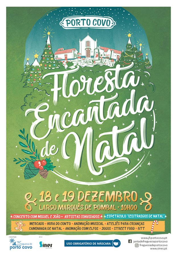A Junta de Freguesia de Porto Covo organiza nos dias 18 e 19 de dezembro, no Largo Marquês de Pombal em Porto Covo, o mercado de Natal FLORESTA ENCANTADA.