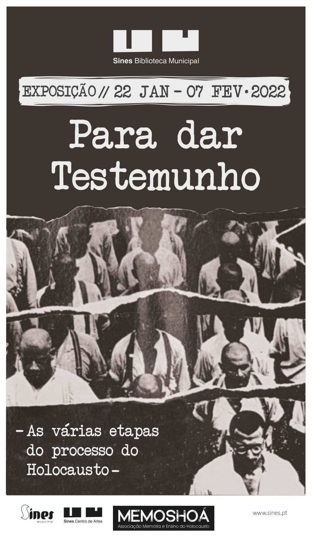 No âmbito do Dia Internacional em Memória das Vítimas do Holocausto, 27 de janeiro, a Biblioteca Municipal de Sines tem patente, de 22 de janeiro a 7 de fevereiro de 2022, a exposição "Para Dar Testemunho".