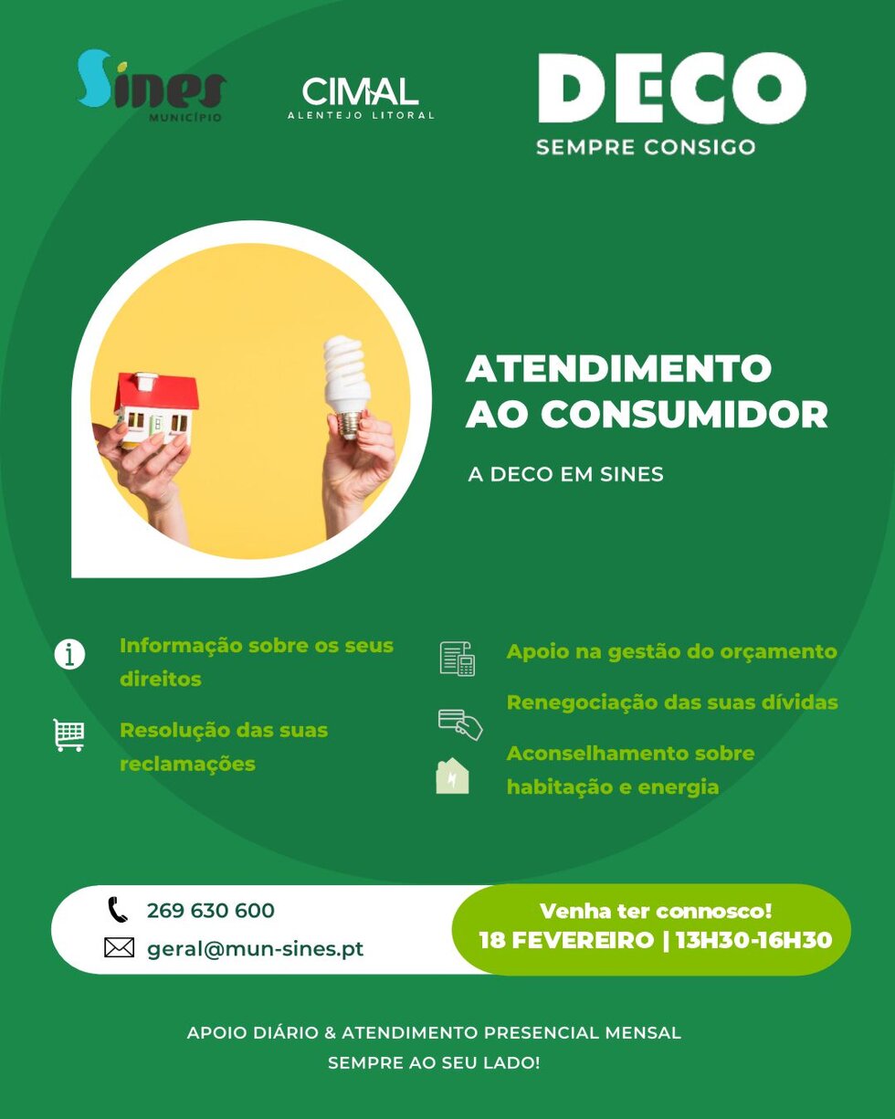 A Delegação de Évora da DECO faz, mensalmente, atendimento presencial aos consumidores do concelho de Sines. Com o atendimento, é possível obter: